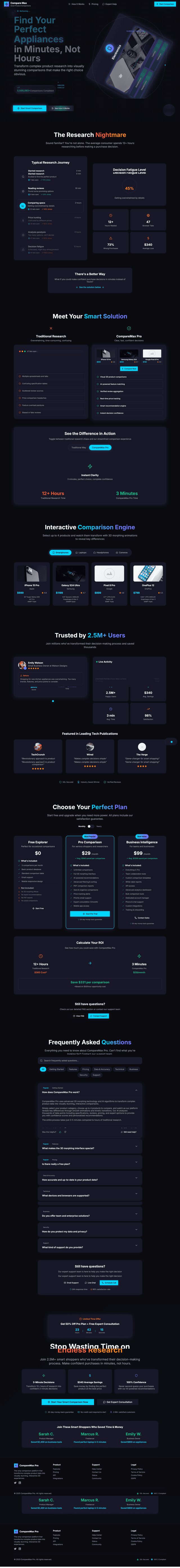 This Compare Electronics Products landing page template makes it easy to find the right gadgets and appliances in minutes. With a sleek, interactive design, it highlights product comparisons, key features, pricing plans, and user reviews. Ideal for e-commerce or tech platforms, it helps users quickly research, compare, and choose the best products with confidence.