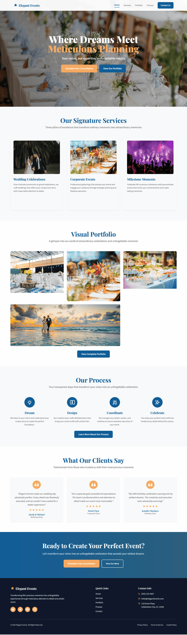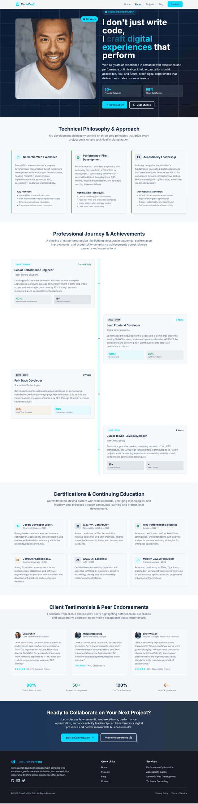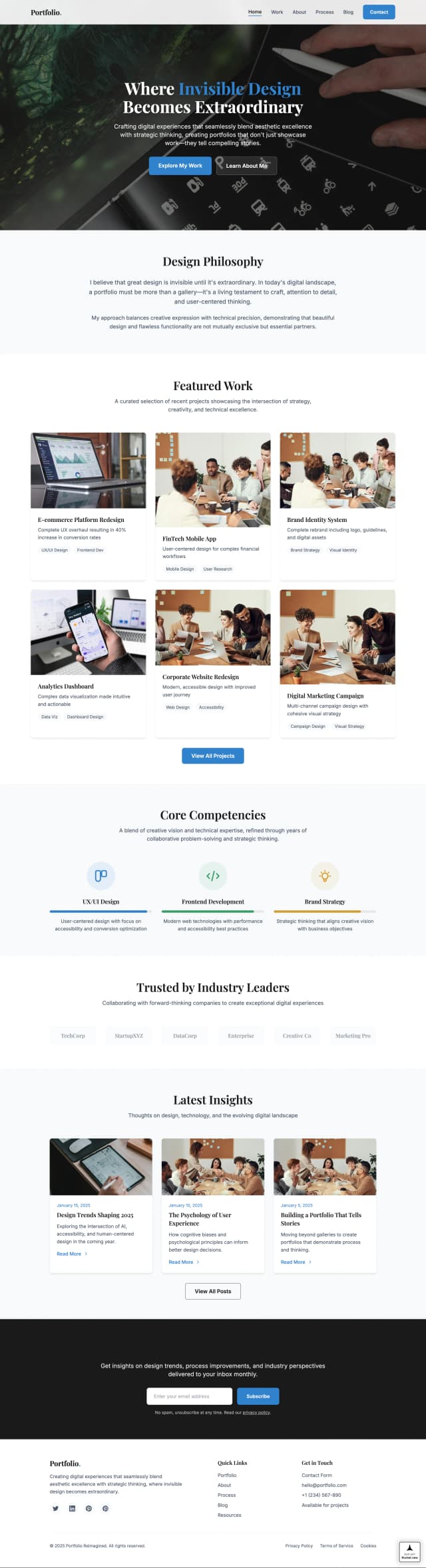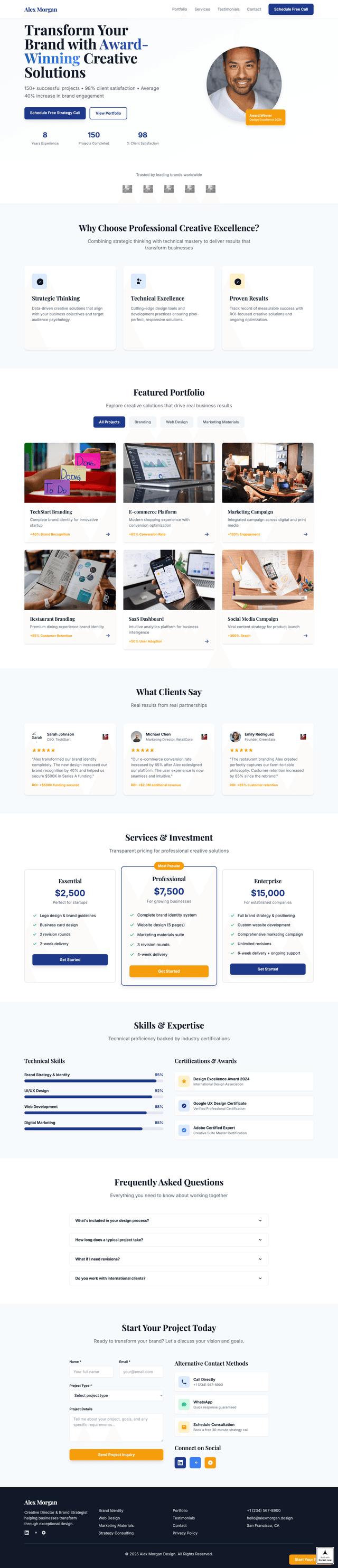 The Freelancer Portfolio Template is built for creative professionals to showcase work, attract clients, and manage projects. It features a portfolio gallery, client testimonials, clear service packages, pricing tables, and integrated contact forms. Highlight your skills, certifications, and industry experience while offering easy ways for clients to connect and start projects.