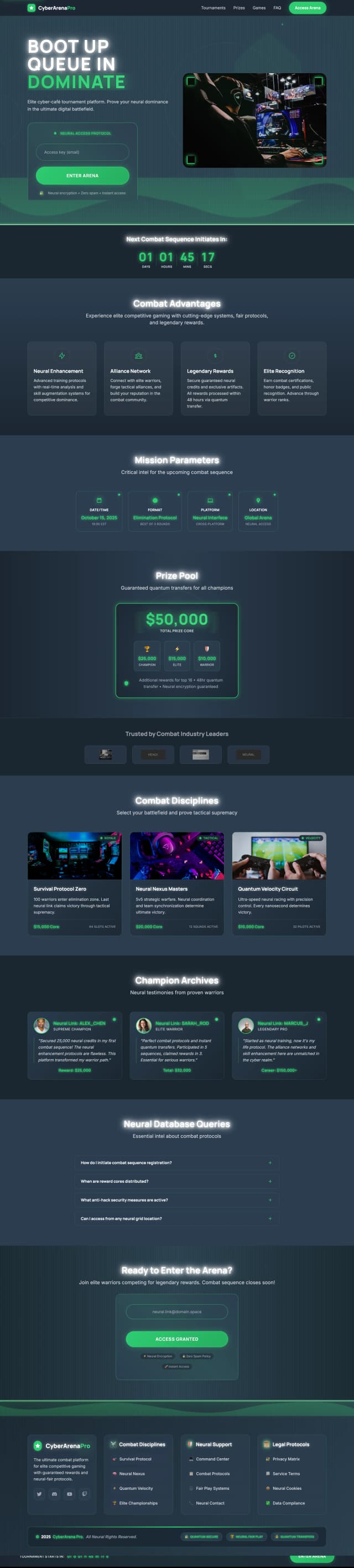 A competitive hub to register for tournaments fast, track live brackets and match alerts, browse supported games by platform/tier, and view transparent prize pools and payouts at a glance. Includes team/solo signup, roster management, dispute support, and a clear FAQ for rules, tiers, schedules, and prizes