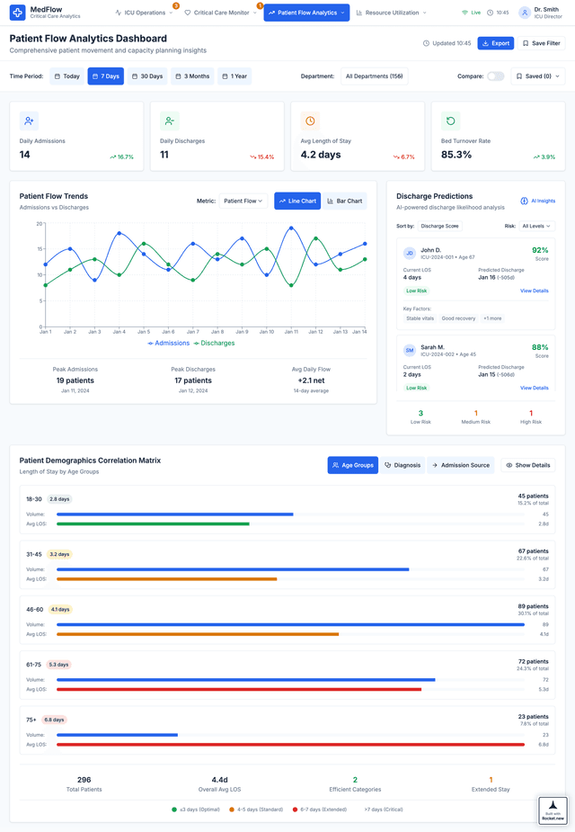 The ICU Capacity & Resource Management Dashboard Template delivers real-time insights for hospital ICU operations. Monitor bed occupancy, ventilator availability, patient vitals, and discharge readiness with live updates. AI-powered analytics optimize staffing, equipment usage, and resource allocation. With predictive forecasting, critical alerts, and operational cost analysis, this template empowers healthcare teams to manage ICU performance, improve patient care, and ensure resource efficiency