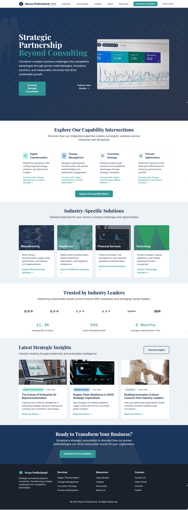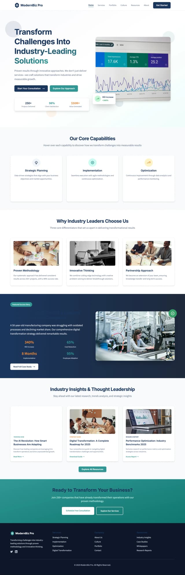 This sleek agency website template is designed for business consulting and client engagement, featuring service showcases, portfolios, and consultation booking. It includes interactive ROI calculators, solution finders, case studies, and webinars to enhance credibility. Built with semantic responsive design, optimized loading, it ensures high performance, accessibility, and a professional user experience across devices.