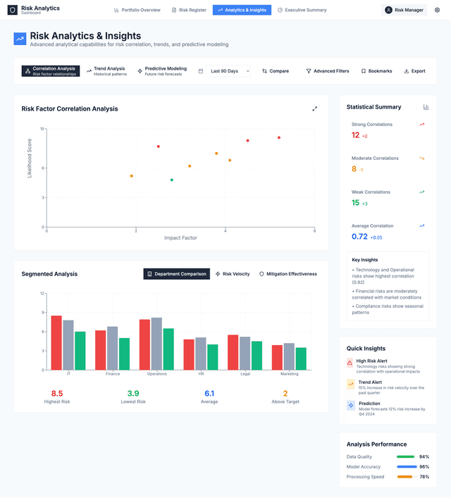 Risk register is an internal tool designed to help businesses manage and analyze risk effectively. It features a comprehensive dashboard for risk portfolio overviews, a detailed interactive risk register, and advanced analytics for predictive modeling. This template enables teams to identify, assess, and mitigate potential risks with data-driven insights and streamlined reporting.