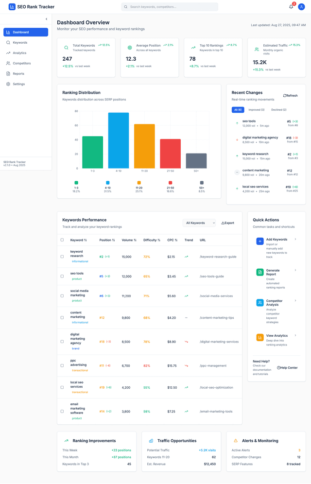 This template is an essential tool for SEO professionals and content creators. It features a comprehensive dashboard to track keyword rankings, monitor search volume, and analyze SERP positions over time. The intuitive interface provides a clear visual representation of data, allowing users to easily identify opportunities to improve their organic search performance and drive more traffic.