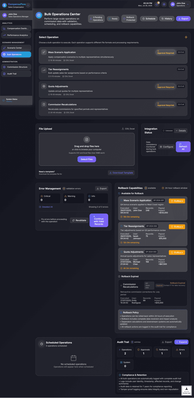 This Sales Compensation Management template helps teams manage, simulate, and analyze commission structures with ease. It features tools like bonus simulators, real-time performance analytics, bulk operations for mass updates, and detailed role configurations. Users can track revenue, quota attainment, and payouts with visual dashboards and benchmarking insights. With error handling, rollback options, and scenario testing, it streamlines complex compensation workflows—ideal for both technical admins and non-technical sales leaders.