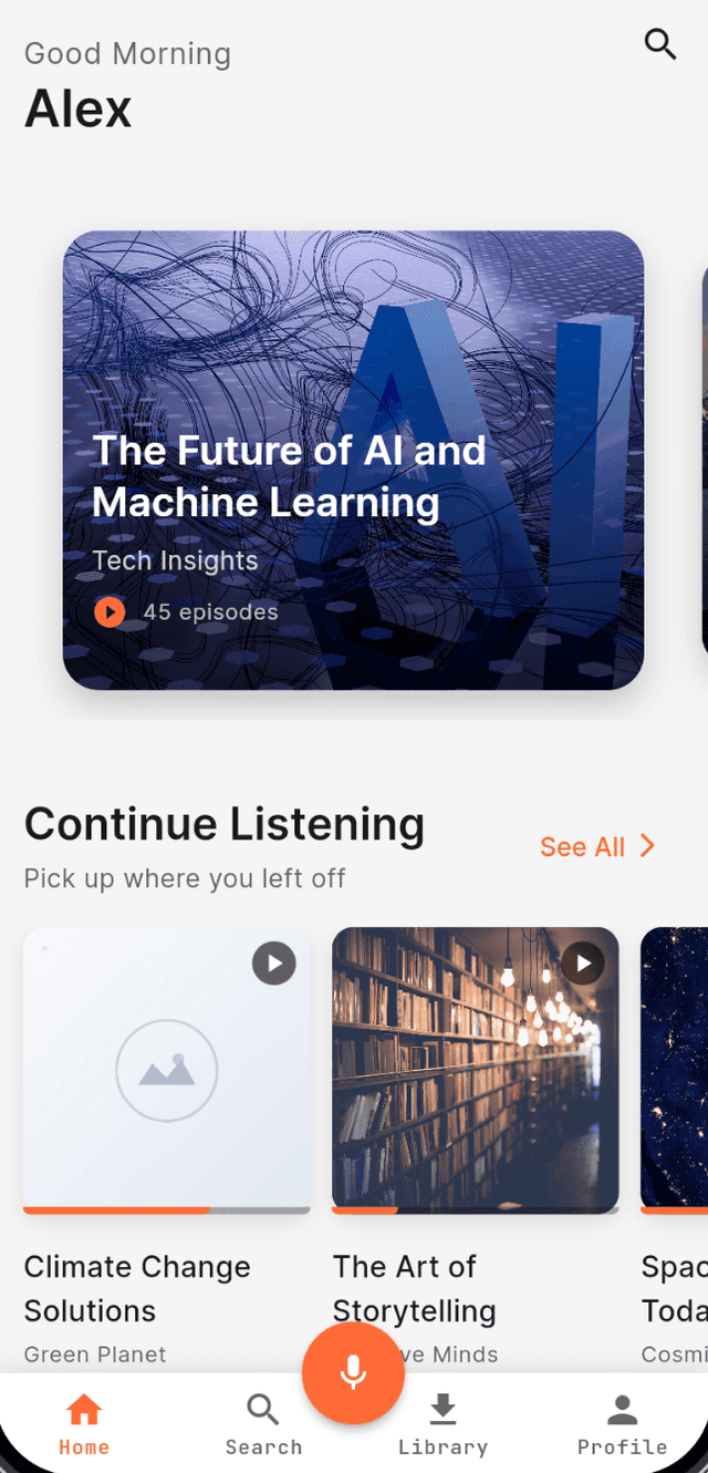 PodcastPro is a comprehensive app template for a podcast player that offers a sleek user interface and robust features. It lets you discover new podcasts with a powerful search, keep track of your listening stats, and download episodes for offline listening. The player includes controls for playback speed, sleep timers, and a detailed show notes section. .
