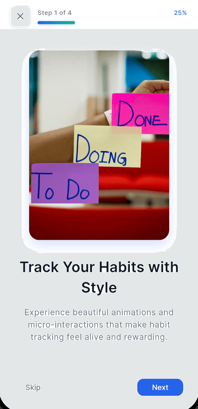 HabitFlow is a dynamic app template for building a personal habit tracker. It features an elegant and engaging design, making it simple for users to track their daily routines. Key functionalities include setting up and managing habits, visualizing progress through detailed analytics, and celebrating milestones with streak statistics. The customizable UI and notification options empower users to achieve their goals effectively.