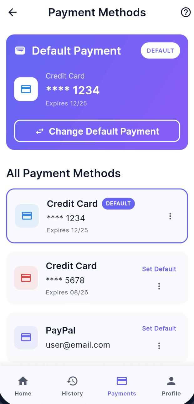 This Ride‑Hailing App UI template showcases a modern, intuitive mobile experience. It includes a smart home screen with AI route suggestions, a detailed trip summary, searchable trip history, and a clear payments manager for cards and PayPal with default selection. Clean navigation tabs keep everything accessible, making it ideal for both technical and non‑technical users.