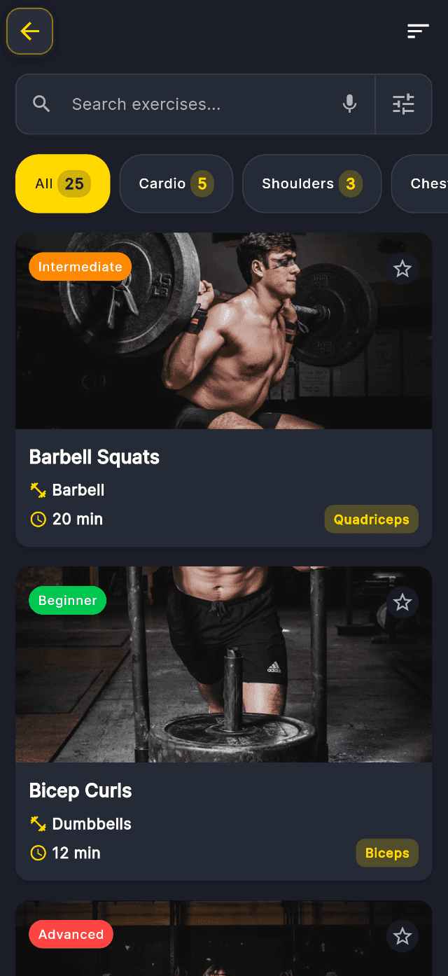 This mobile workout trainer app helps you achieve your fitness goals with ease. It features personalized workout plans, a comprehensive exercise library, and a clean interface to track your progress. The app's design is focused on providing a streamlined experience, making it simple to manage your training, stay motivated, and build a consistent routine.