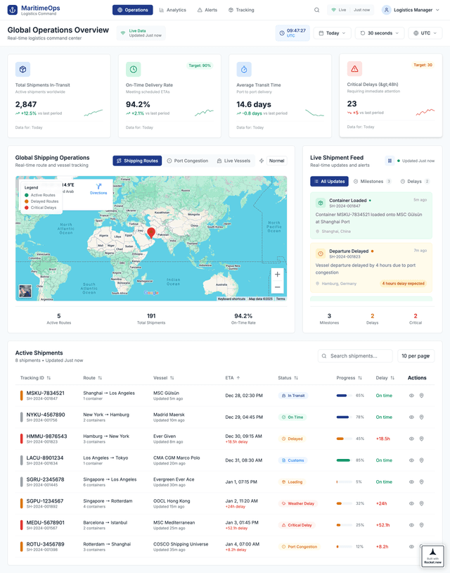 The Supply-Chain Visibility Dashboard provides real-time tracking of global shipments, delivery timelines, and route performance through live maps and analytics. It sends instant alerts for port congestion, weather issues, and delays, enabling users to spot risks early and take action. Designed for managers and operations teams, this template simplifies global logistics and improves efficiency across multiple routes worldwide.