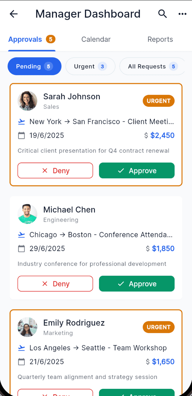 This travel request platform helps employees submit, track, and manage corporate travel plans easily. Users can fill out trip details, estimated costs, business justifications, and submit for manager approval. Managers review requests, approve or reject .them, and track upcoming trips on a shared travel calendar. The system includes draft saving, approval workflows, high-cost flags, and a calendar view for better planning. It's designed for organizations to streamline travel approvals and expense tracking
