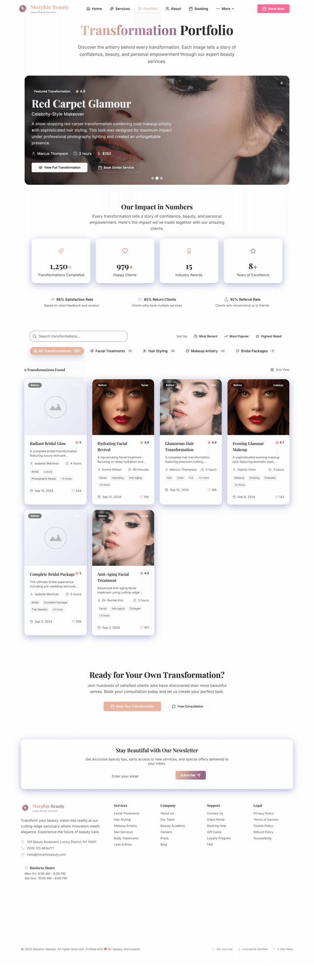 This modern and elegant website template is perfect for beauty salons and spas. It features a stunning design to showcase your services and a dedicated section for your team. The integrated online booking system is a key feature, allowing clients to effortlessly book appointments directly on your site, streamlining your business operations.