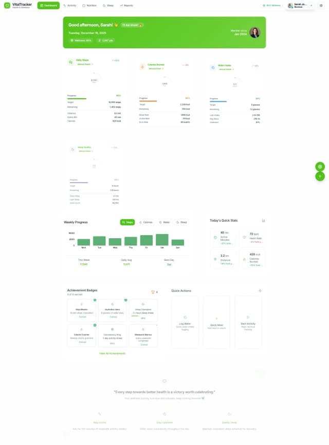 A minimal yet futuristic health tracker web app designed to keep wellness simple, smart, and visually refreshing. With pastel tones, soft shadows, and interactive visuals, it helps users monitor steps, calories, hydration, and sleep in a calm, uplifting environment. Precision meets personality your wellness data, beautifully visualized.