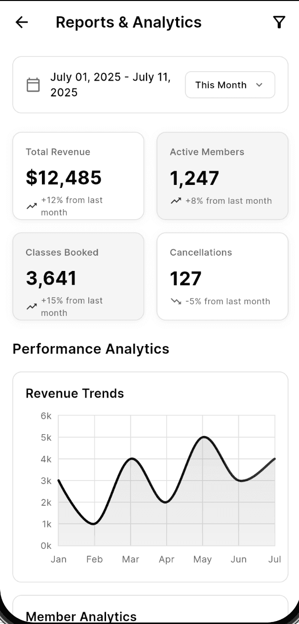 This modern fitness app template helps users easily browse and book fitness classes, view upcoming sessions, and manage their memberships. With a clean, mobile-first design, it offers features like personalized greetings, real-time booking status, QR code access, class schedules, and plan comparisons. Whether you're a gym owner or developer, this UI ensures a smooth experience for members and trainers alike perfect for any wellness, gym, or studio-based service.