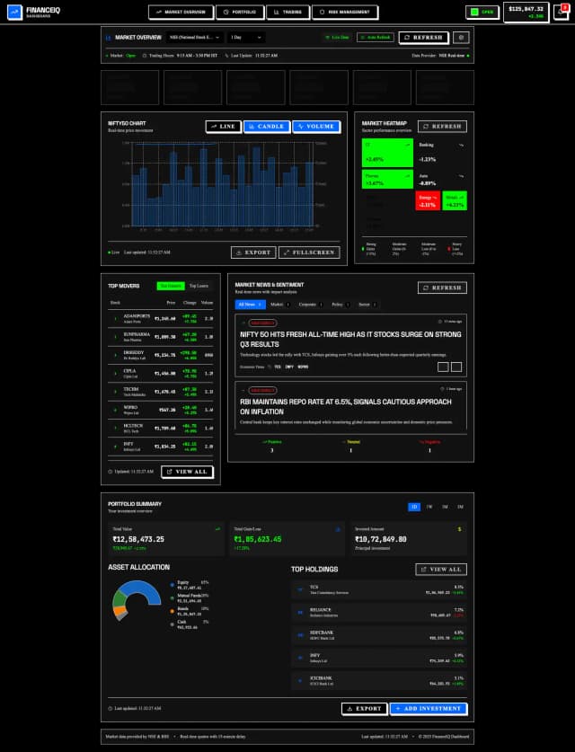The Live Stock Market Dashboard template is a comprehensive tool for tracking and managing investments. It provides real-time market overviews, portfolio analytics, trading features, and risk management insights. Key features include live stock charts, watchlists, order books, and performance metrics, making it easy for all users to monitor markets, analyze trends, and make informed trading decisions efficiently.