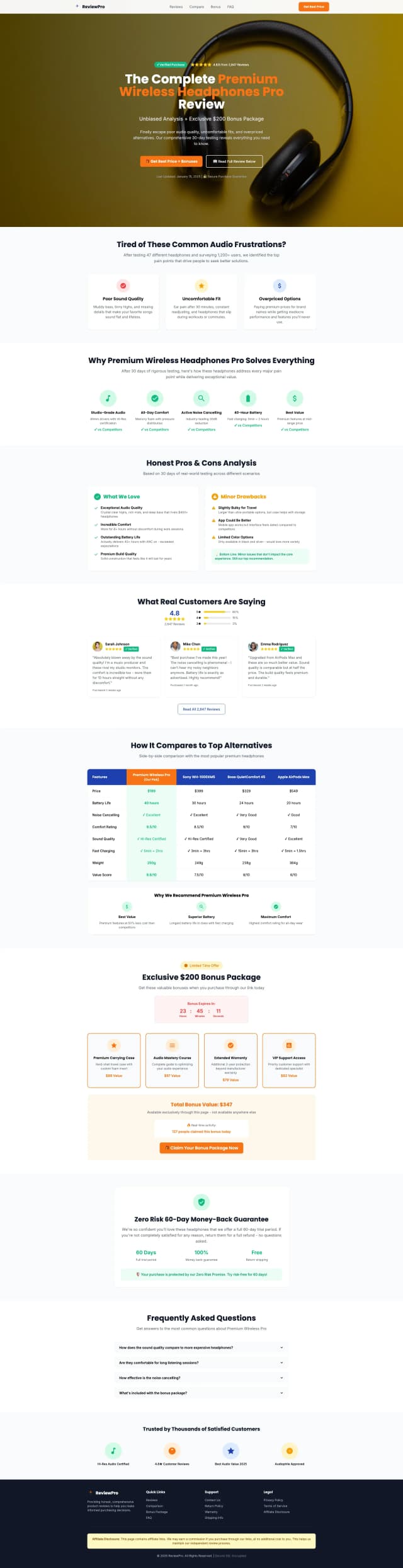 This is a high-converting landing page template designed for affiliate product reviews. It highlights product benefits with a clear headline, image, and “Buy Now” button. The page includes a pros & cons breakdown, real customer reviews, comparison with other products, and a limited-time bonus offer to boost urgency. SEO-friendly and fully static, it’s perfect for affiliates who want to drive clicks and conversions with a sleek, informative, and trust-building design.