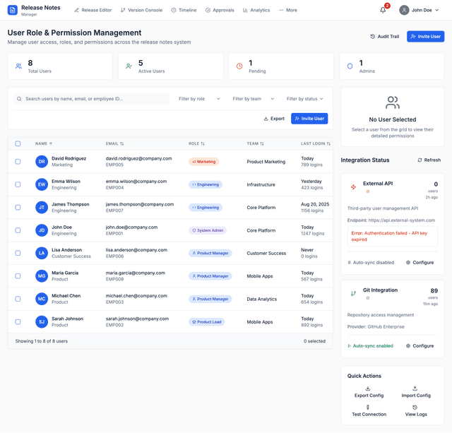 This release notes template helps companies clearly communicate product updates to users. It features a clean design to detail new features, bug fixes, and performance improvements in a straightforward, digestible format. The template’s structured layout makes it easy to maintain an accessible archive of all past updates, fostering transparency and trust with your customer base.