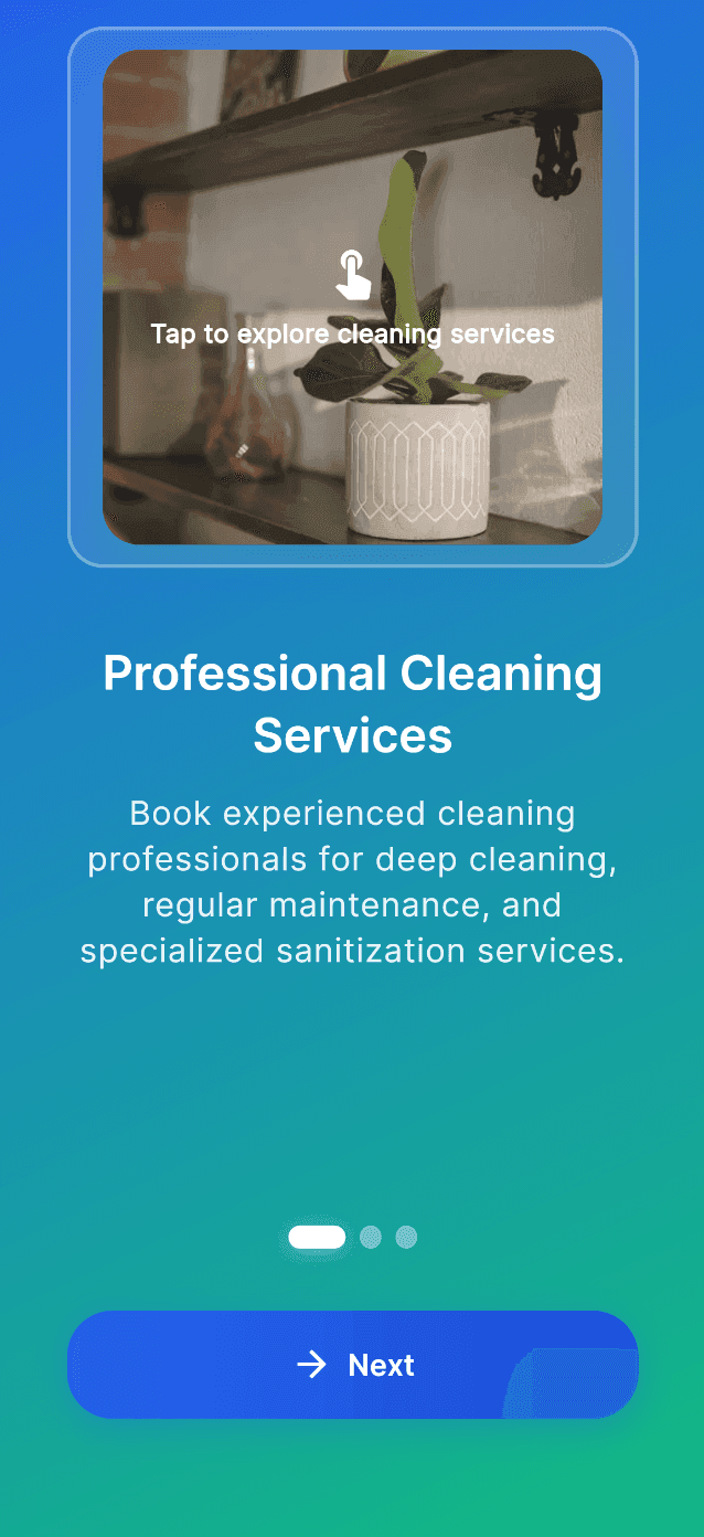 Service Booking is a user-friendly mobile app template for a Home service booking platform. It simplifies the process of hiring professionals for services like cleaning, plumbing, and electrical work. Key features include a seamless booking flow with multiple-choice options, real-time service tracking, and a comprehensive booking history. The app’s intuitive design makes it easy for users to schedule and manage appointments effortlessly.