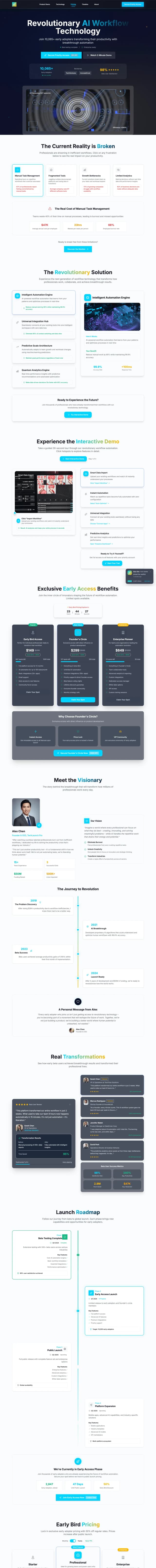 A sleek, futuristic pre-launch landing page designed to deliver an instant premium vibe with glowing accents, smooth gradients, crisp typography, and a sophisticated card system that feels modern, polished, and insanely user-friendly. Every section is crafted to hook the visitor with clarity, motion, and purpose, creating a seamless flow from hero to CTA that makes the user feel at home while experiencing an elevated, next-gen interface.