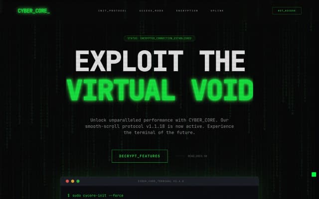 This hacker-themed landing page template offers a futuristic, Matrix-style design perfect for cybersecurity projects, ethical hacking showcases, or tech portfolios. With a bold dark aesthetic, interactive tool cards, and animated effects, it creates an immersive experience for users. Ideal for security professionals, developers, or creative tech brands, it highlights features and tools in a visually engaging way.