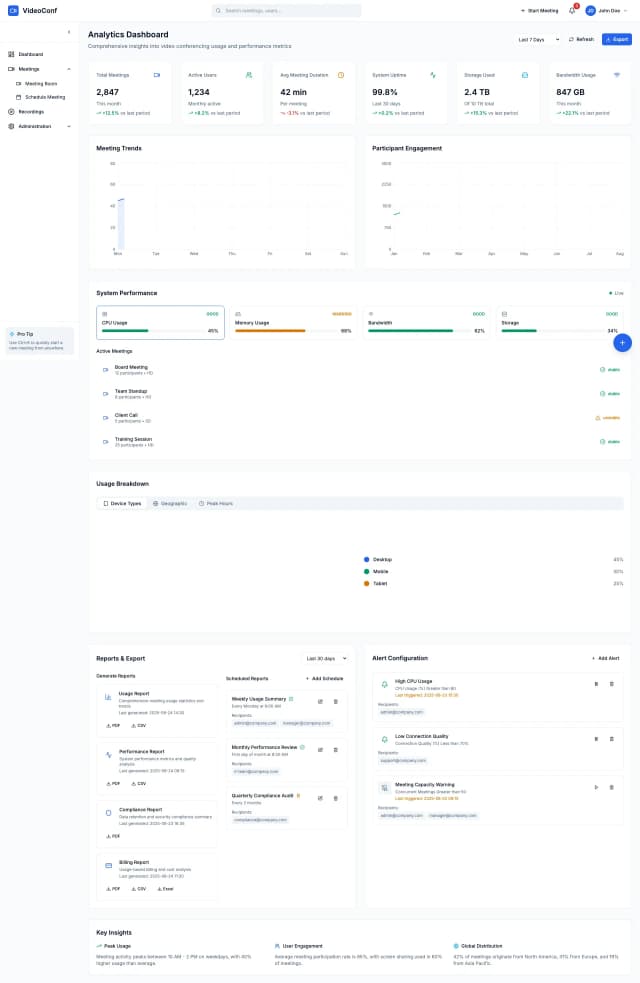 This video conferencing template is designed for modern communication and collaboration. It features a clean, professional interface for hosting meetings with participant management, chat functionality, and screen sharing. The template is an excellent solution for businesses and developers creating a reliable platform for virtual meetings and live events.