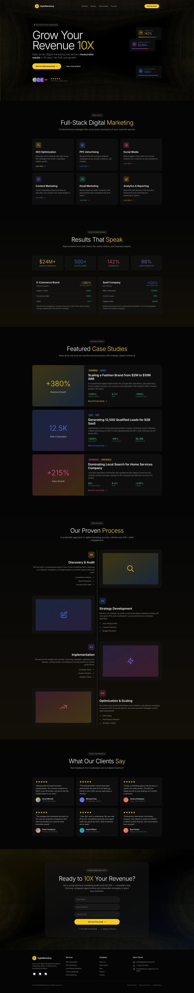 Full-stack digital marketing that turns traffic into revenue. SEO, PPC, social, content, email, and analytics delivered with a clear process, transparent reporting, and proven results.