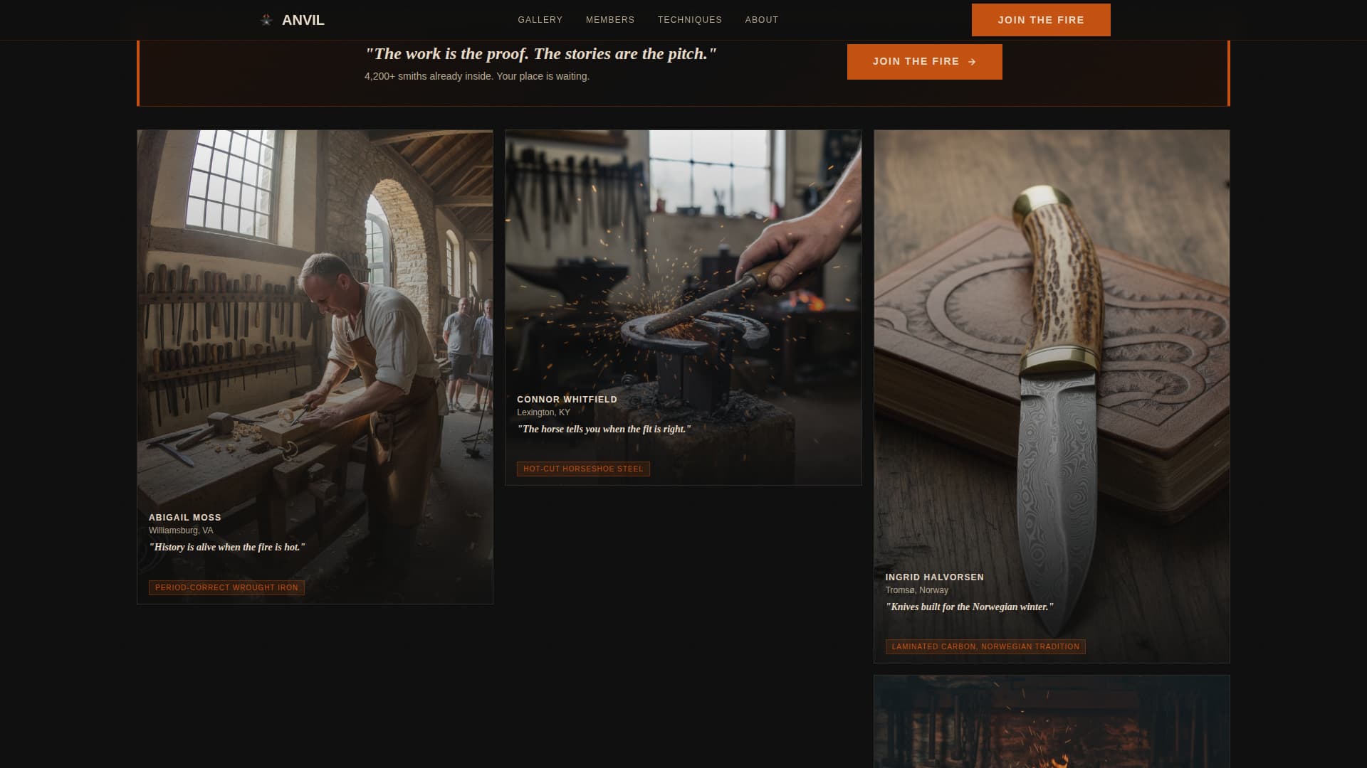 Most community landing pages feel generic. They rely on bullet-point feature lists and stock photography. For a craft like blacksmithing, that gap kills trust before a visitor ever reads the pitch.
