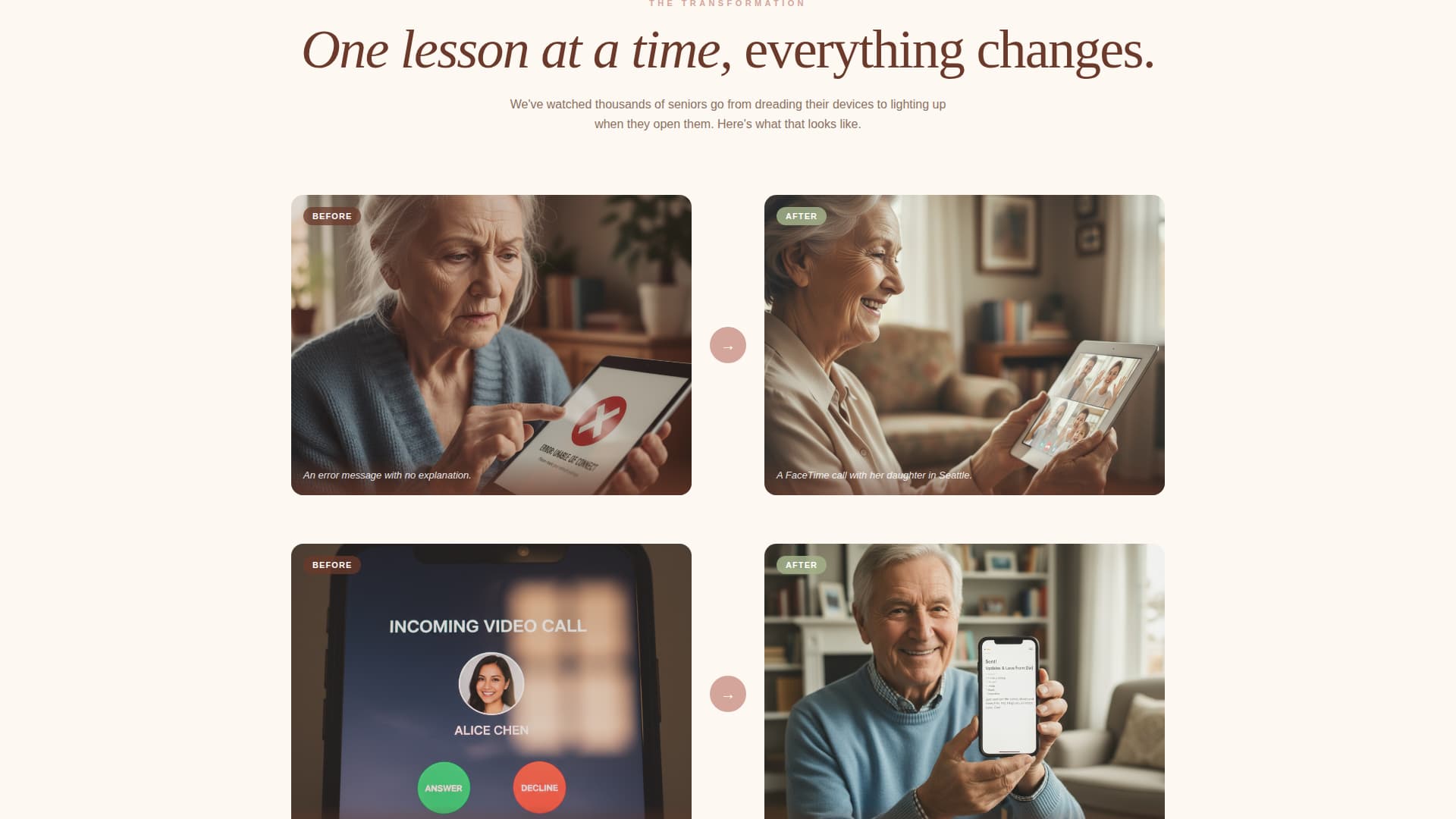 Many senior technology services struggle to earn trust online. Their pages feel clinical, rushed, or aimed at the wrong audience. Bridge solves that directly by making the page itself a demonstration of patience and clarity.