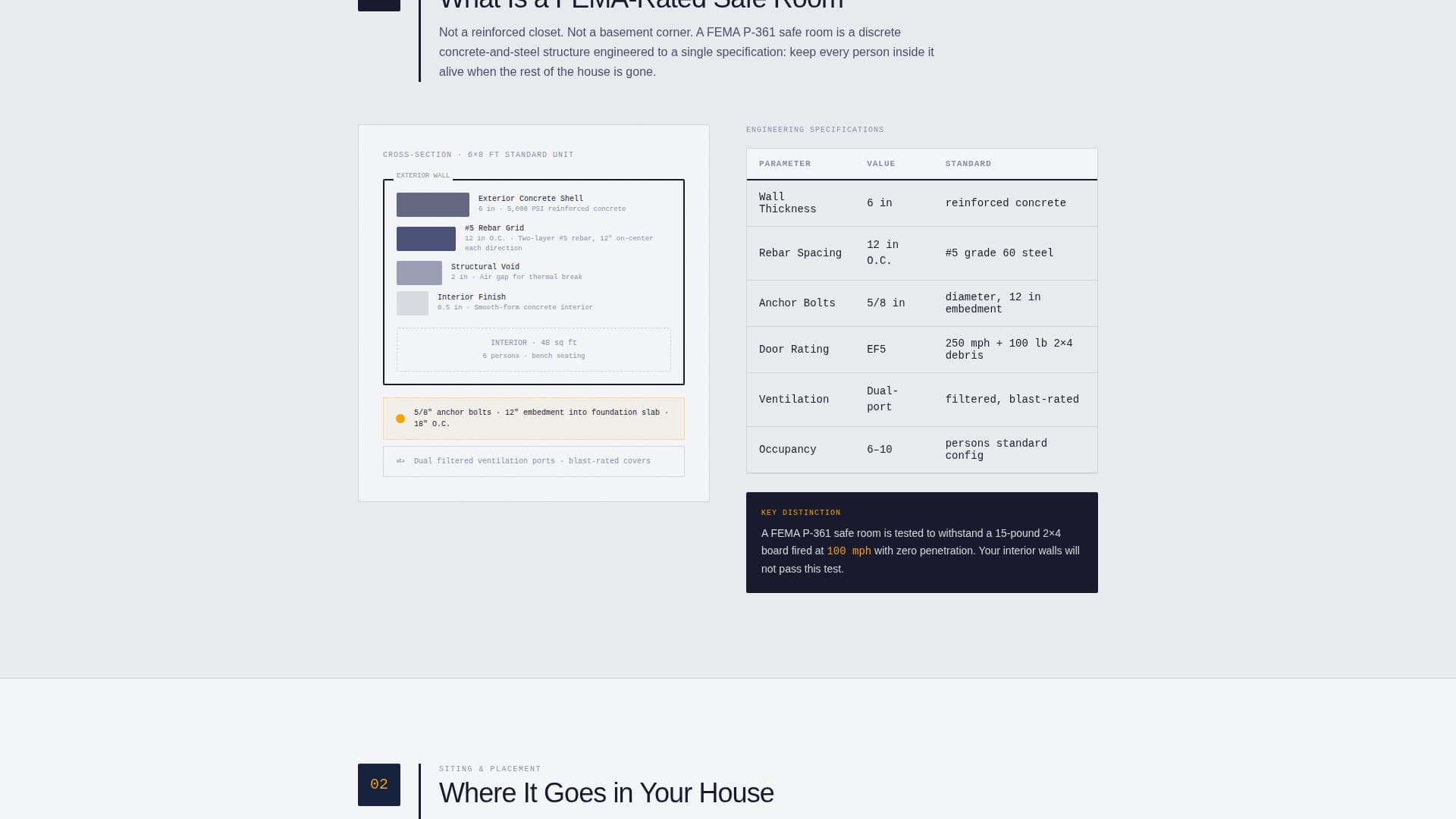 | Step 1: Safe Room Basics | Define what a FEMA-rated safe room is with a cutaway diagram |