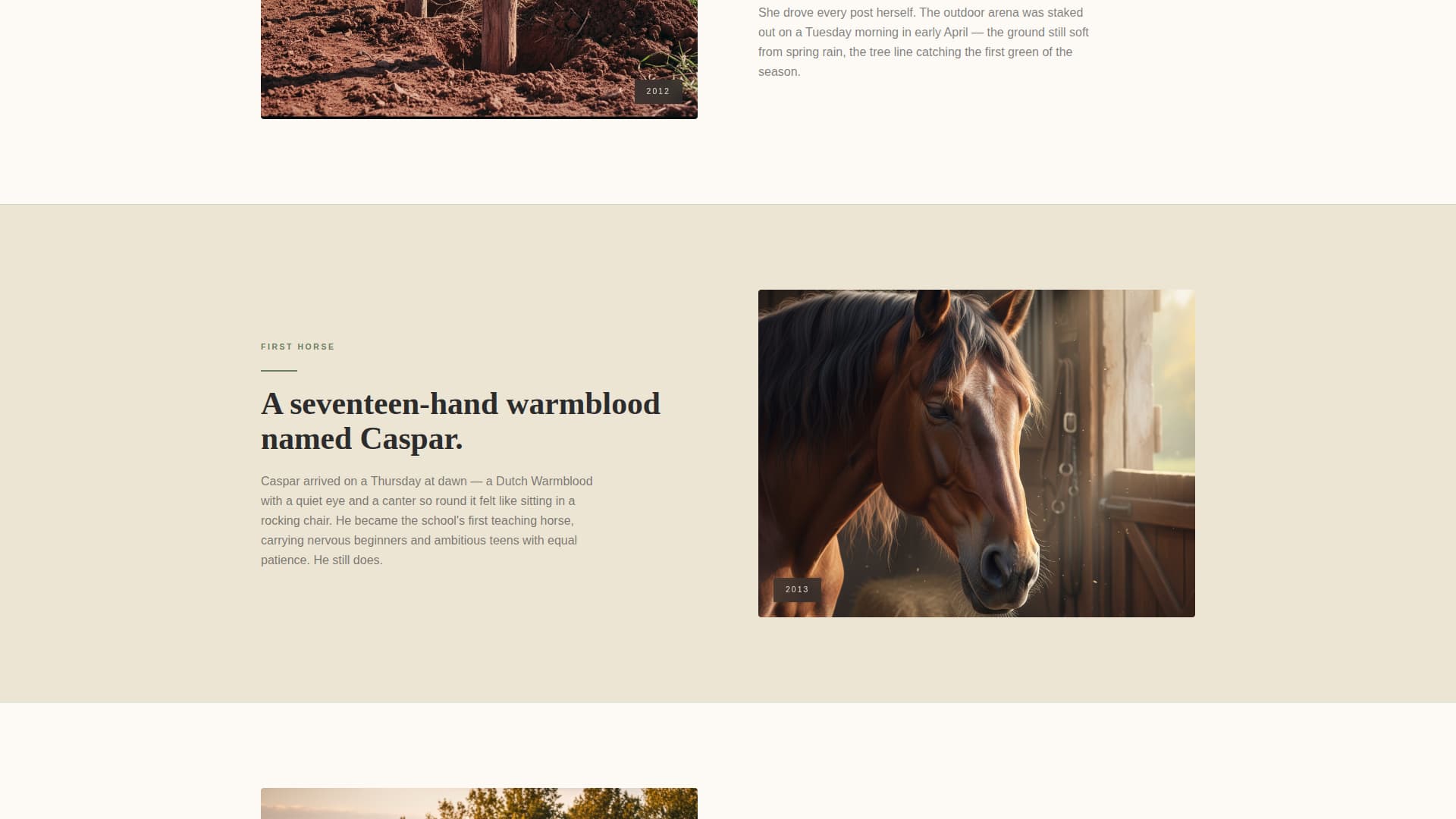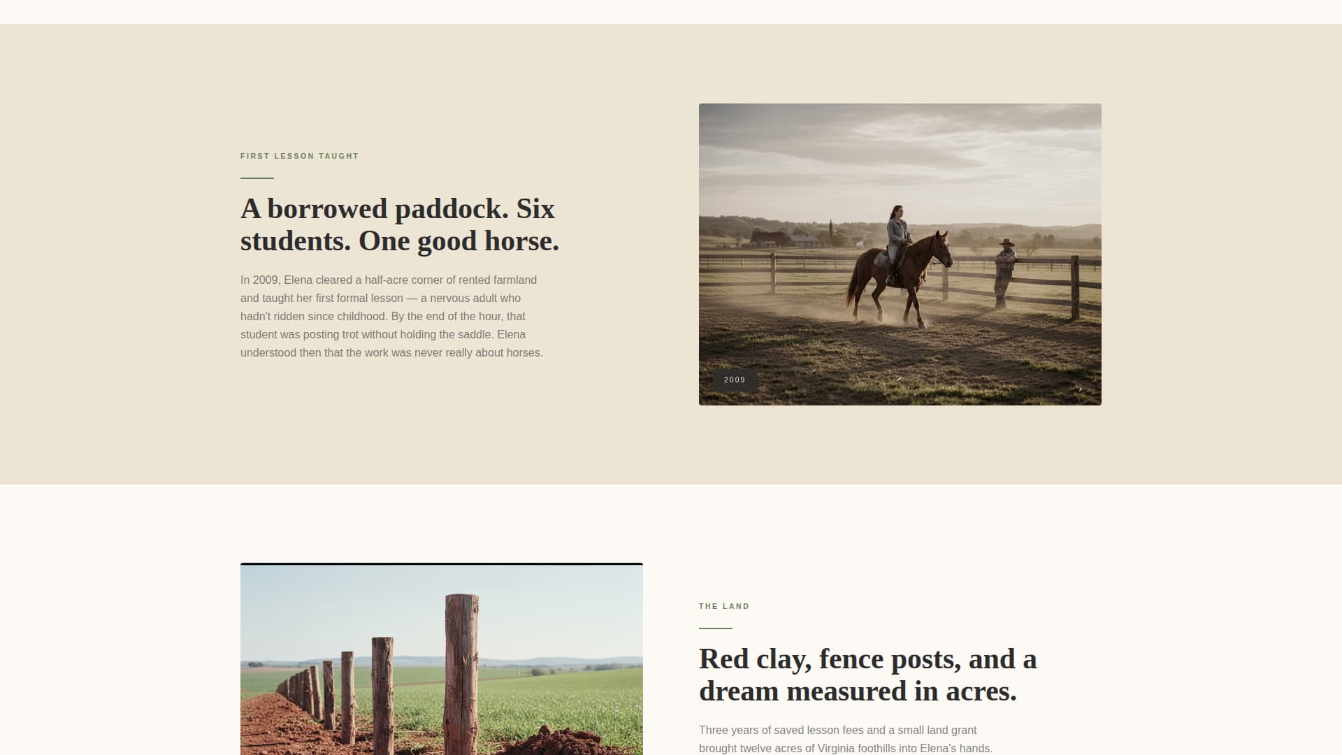 This template fits equestrian businesses that want to attract new students through storytelling rather than a simple service list. It works well for schools that serve mixed riding experience levels and need to build trust before asking for commitment.