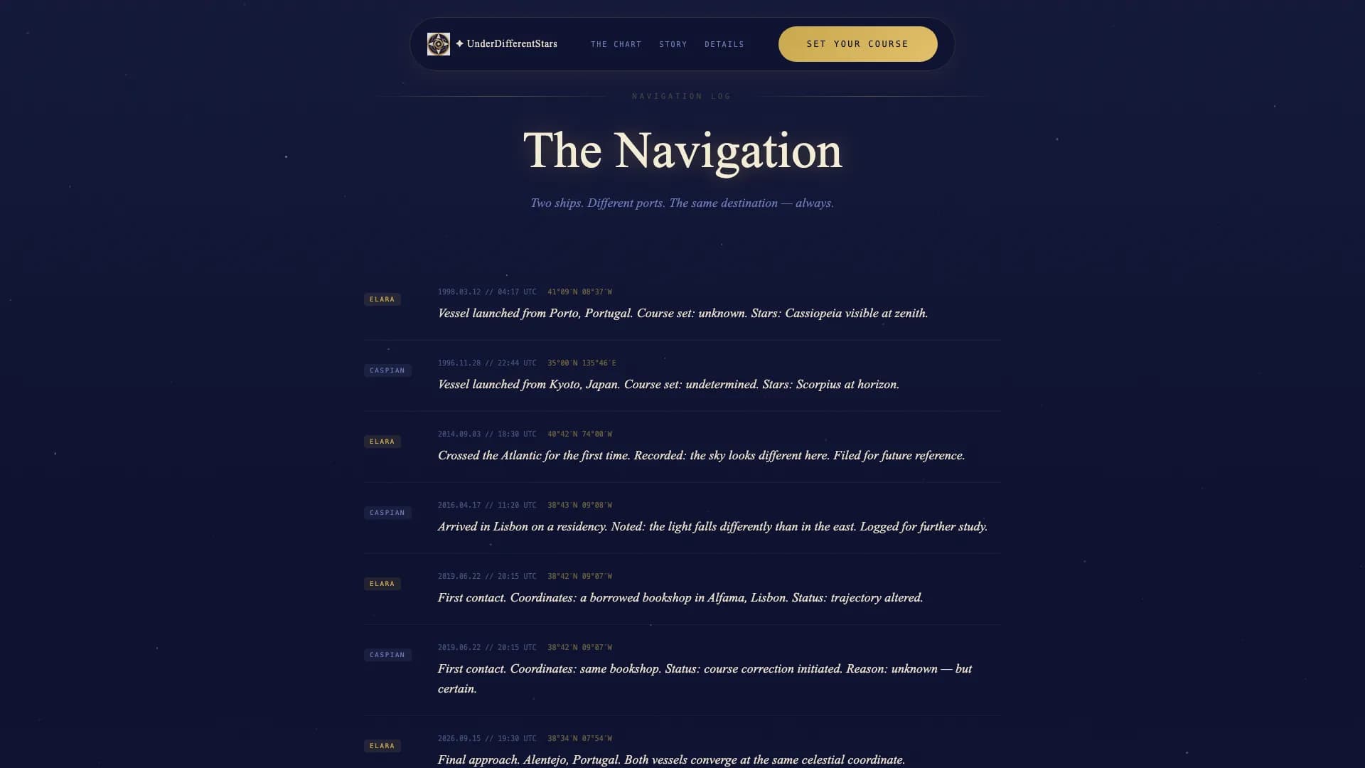 | Navigation Log | Tell couple's story as a celestial voyage |