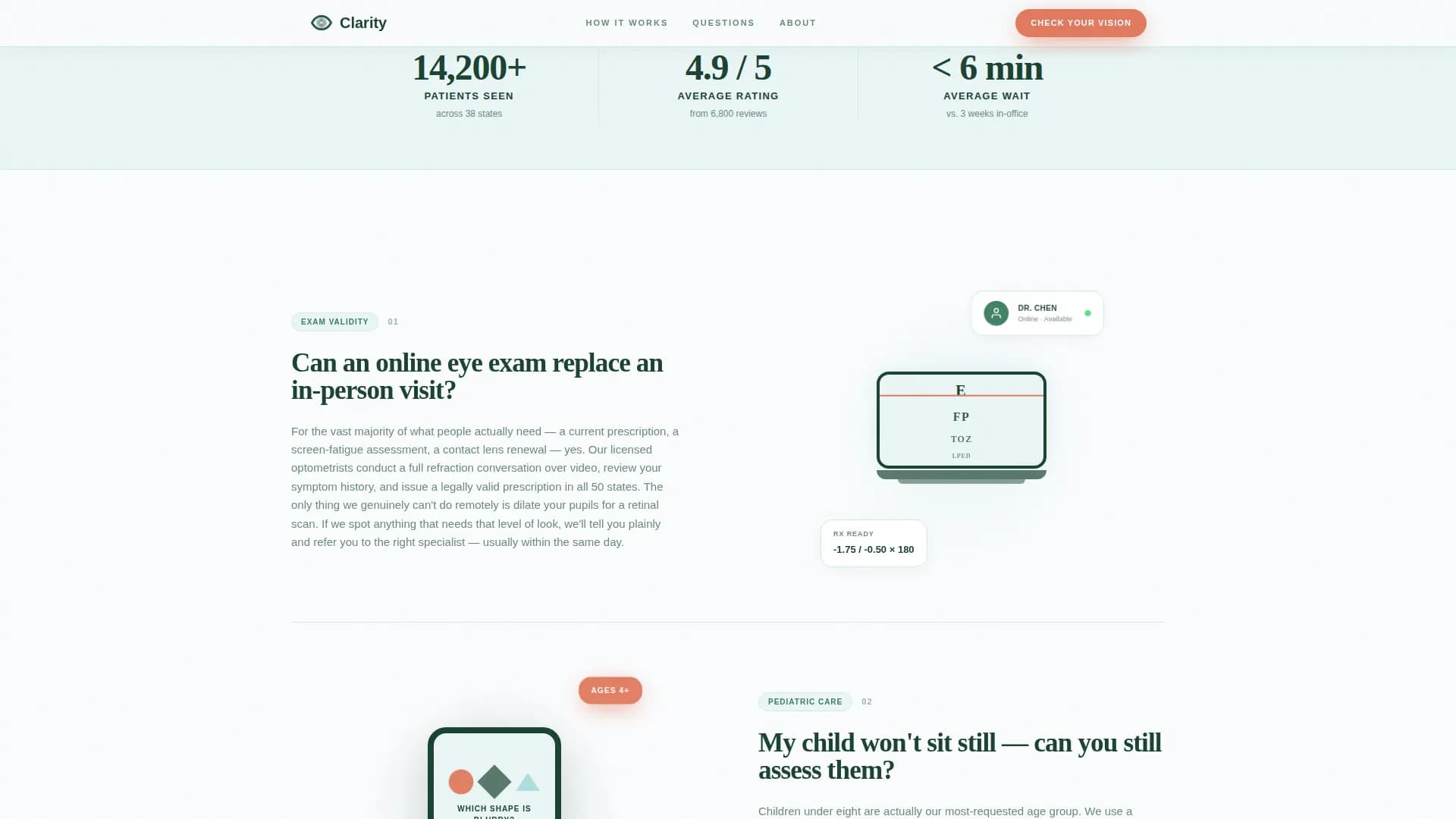 Many people delay eye care because booking an in-person visit feels like a commitment they keep deferring. They know something is off but they need a low-friction entry point that earns their trust before asking for an appointment.