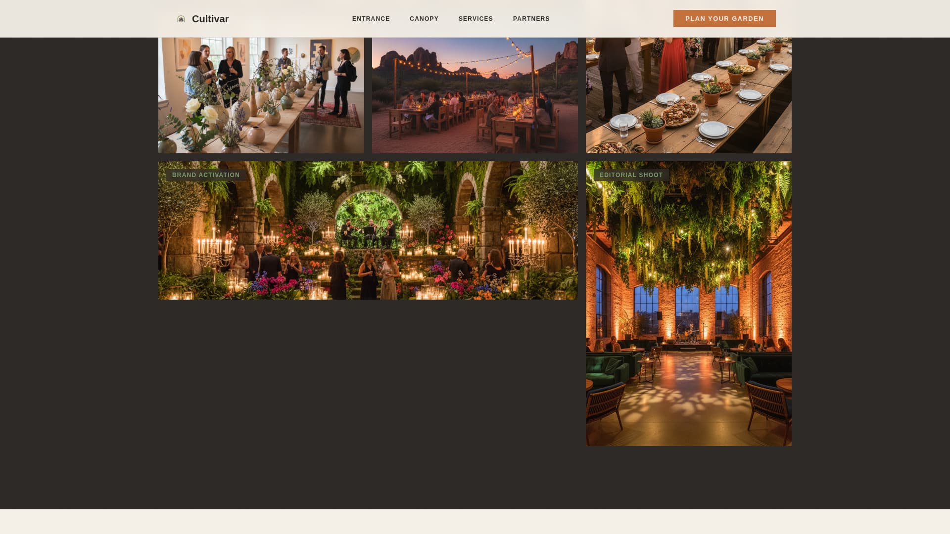 | Canopy event gallery | Showcases past events via hover-explorable grid |