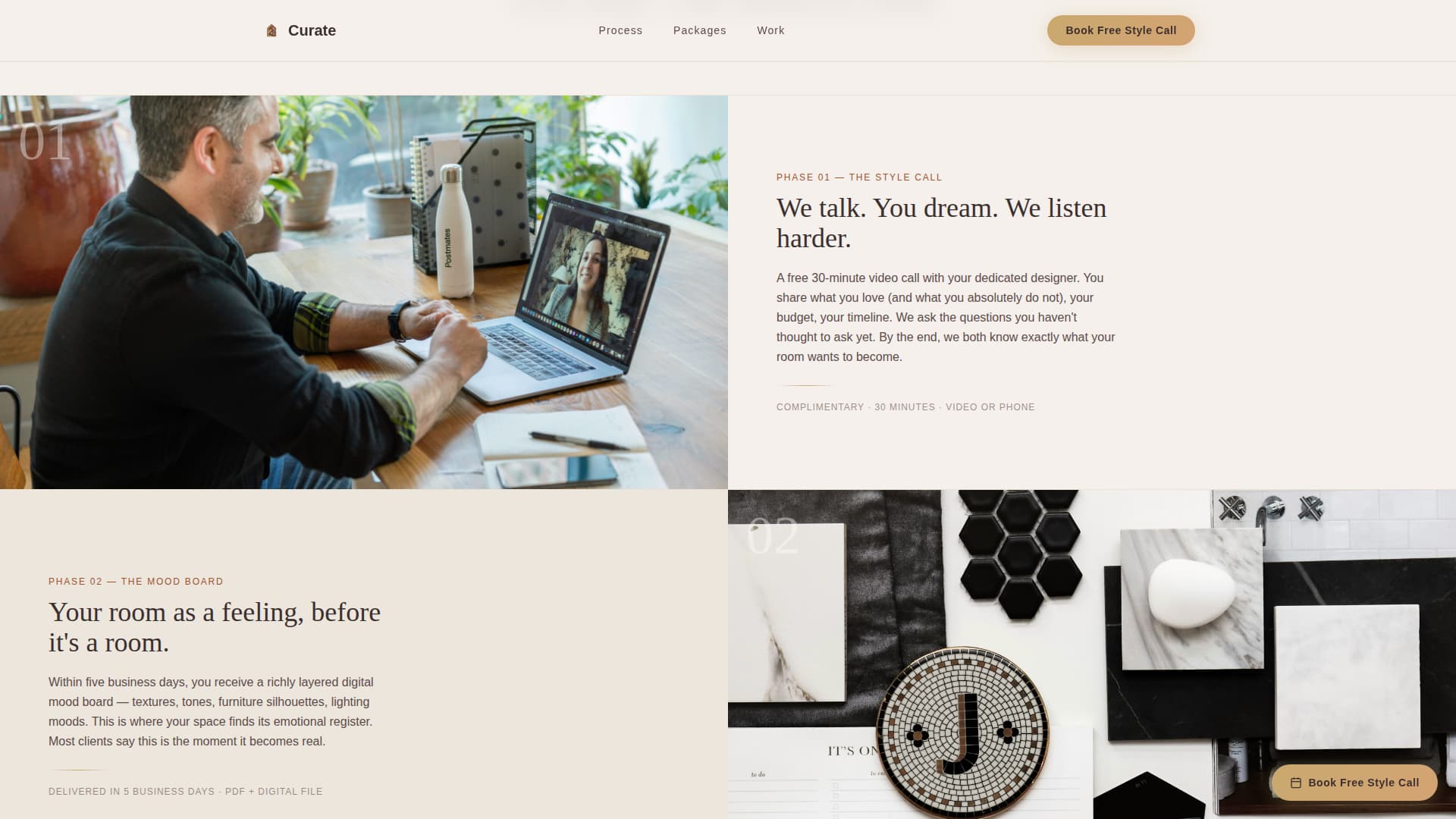 Curate is a strong fit for any virtual interior design business ready to present a polished, process-driven first impression online.