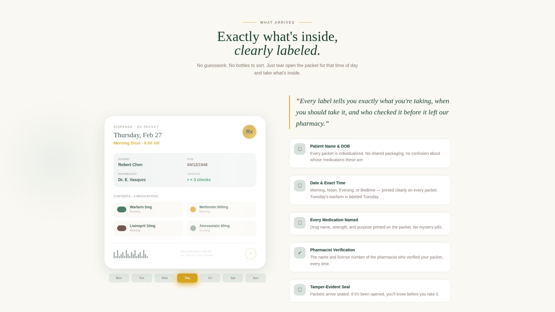 | Mission Declaration | Shares the founding commitment with pharmacist pull-quotes |