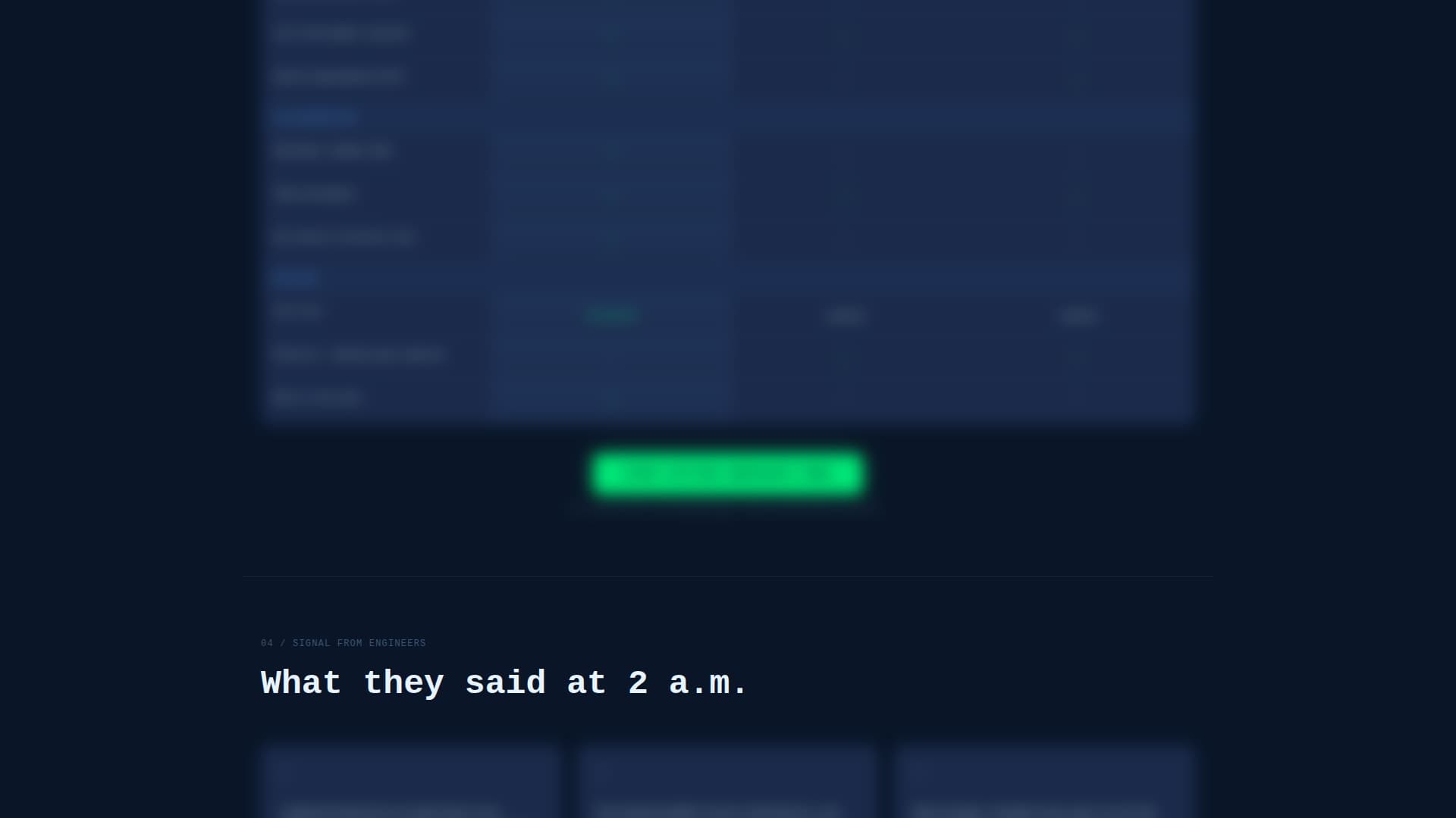 The lower section of the page anchors around a structured comparison table. Signal-green checkmarks and muted-gray cross marks make the contrast between options immediately readable. The primary call-to-action button sits directly below the table to capture intent at peak conviction.