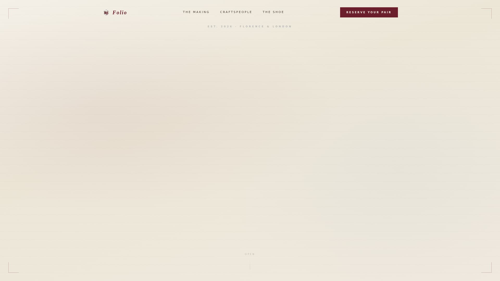 Folio is an overlap and layered landing page template designed for a light academia shoe brand entering a waitlist launch. It opens with a scroll-jacked oxford showcase, moves through stacked creator spotlight cards, and closes with a focused reservation form. Every section is built to draw the reader deeper into the story before asking anything of them.