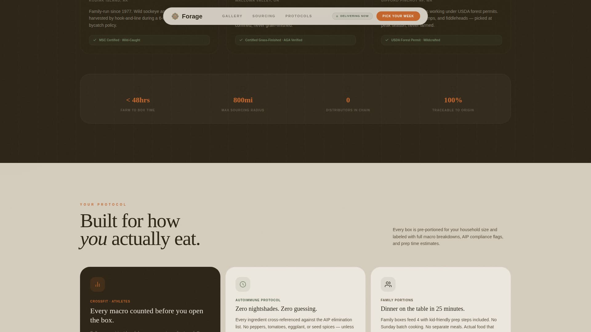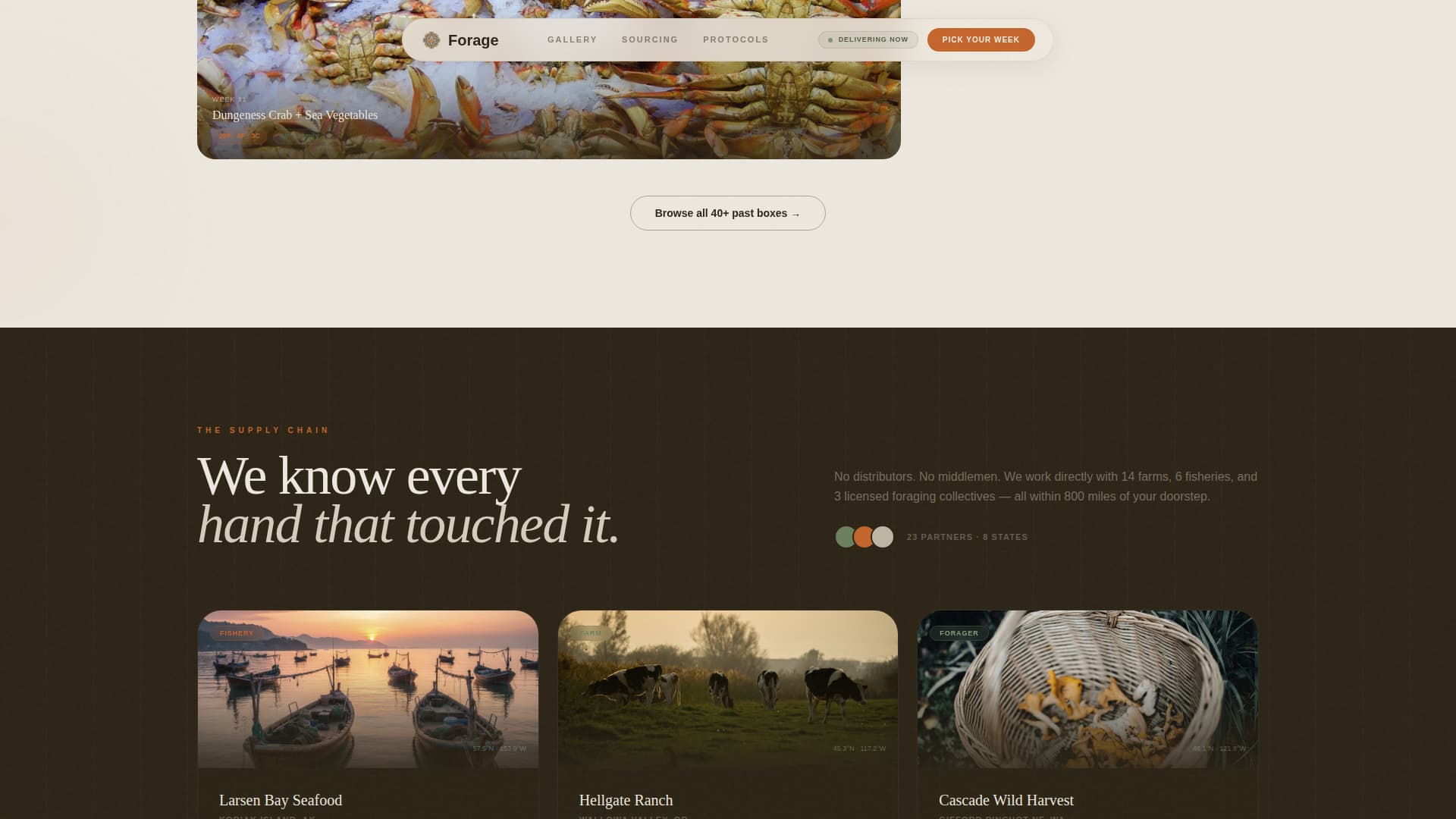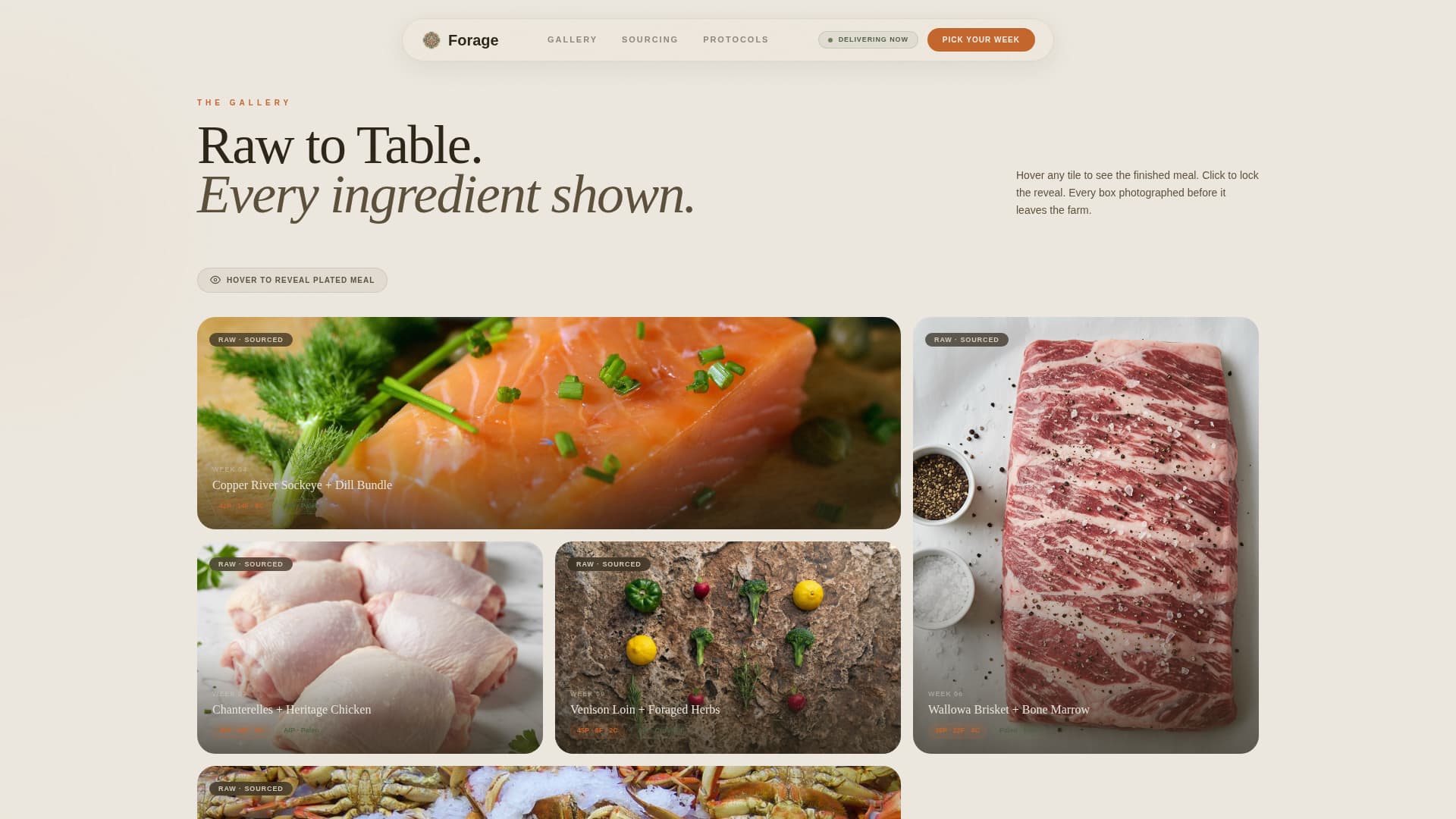 Most food subscription pages ask for a credit card before they answer the real questions: Where does this come from? What does it actually taste like? Who made these decisions about my food? Forage is built to answer all three before the visitor ever reaches a form.