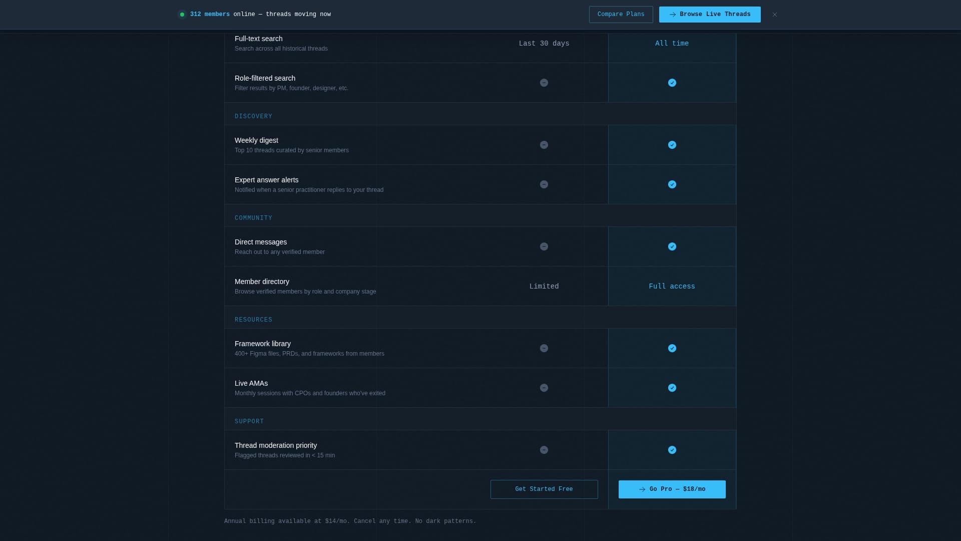 | Membership Tier Table | Clarifies Free versus Pro feature differences side by side |