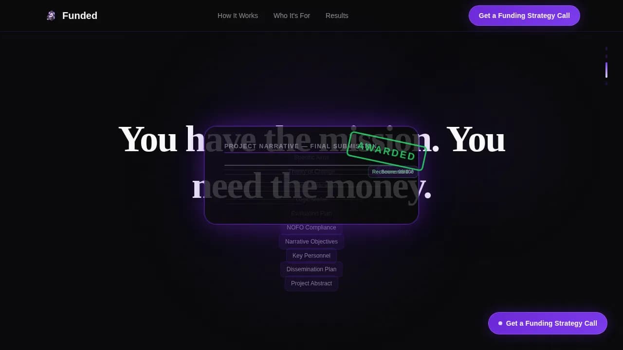 Funded - Immersive Grant Writer Landing Page Template