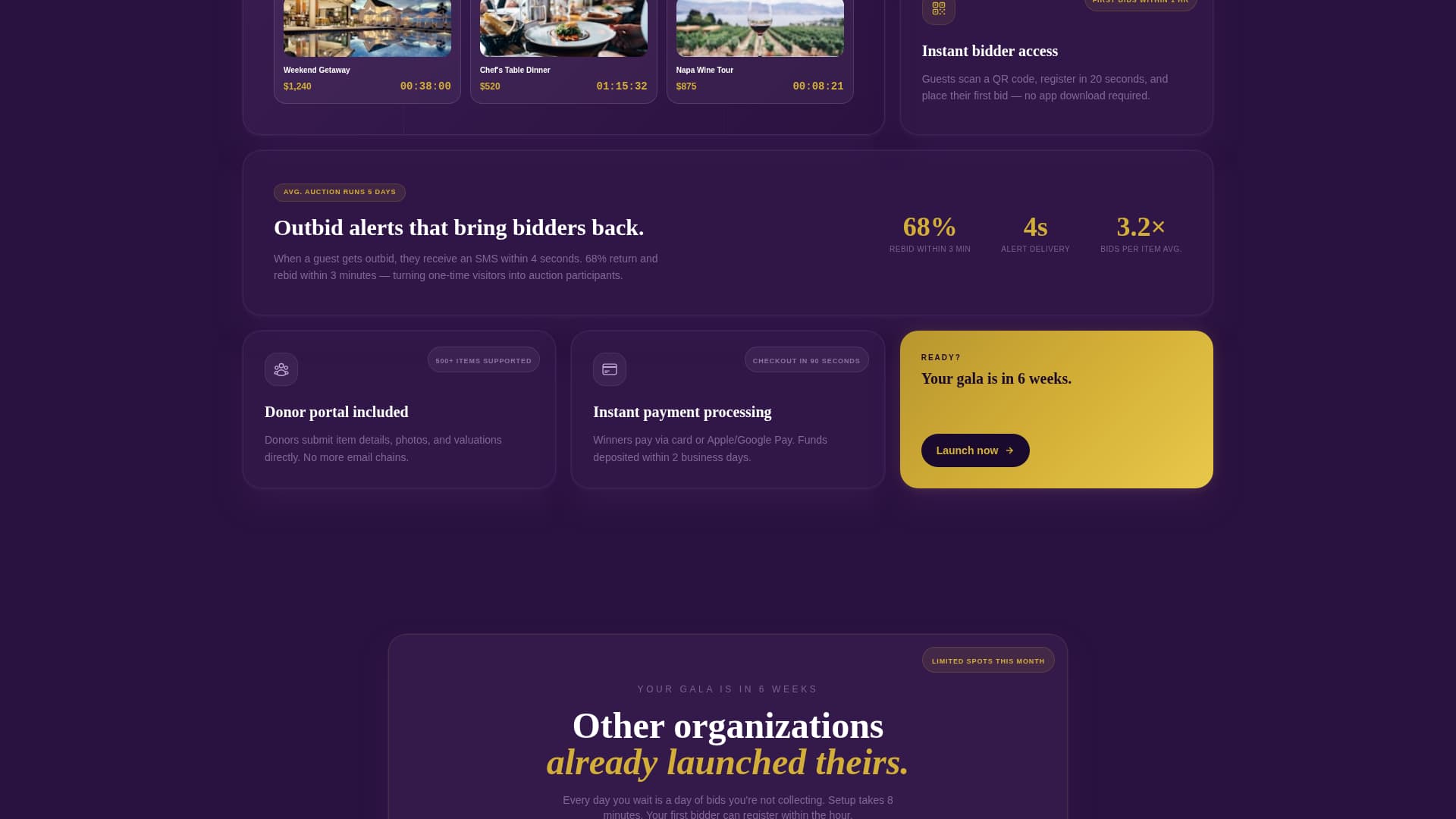 This template packs focused, practical components that serve the specific needs of silent auction organizers. Each feature is built for trust, urgency, and conversion.