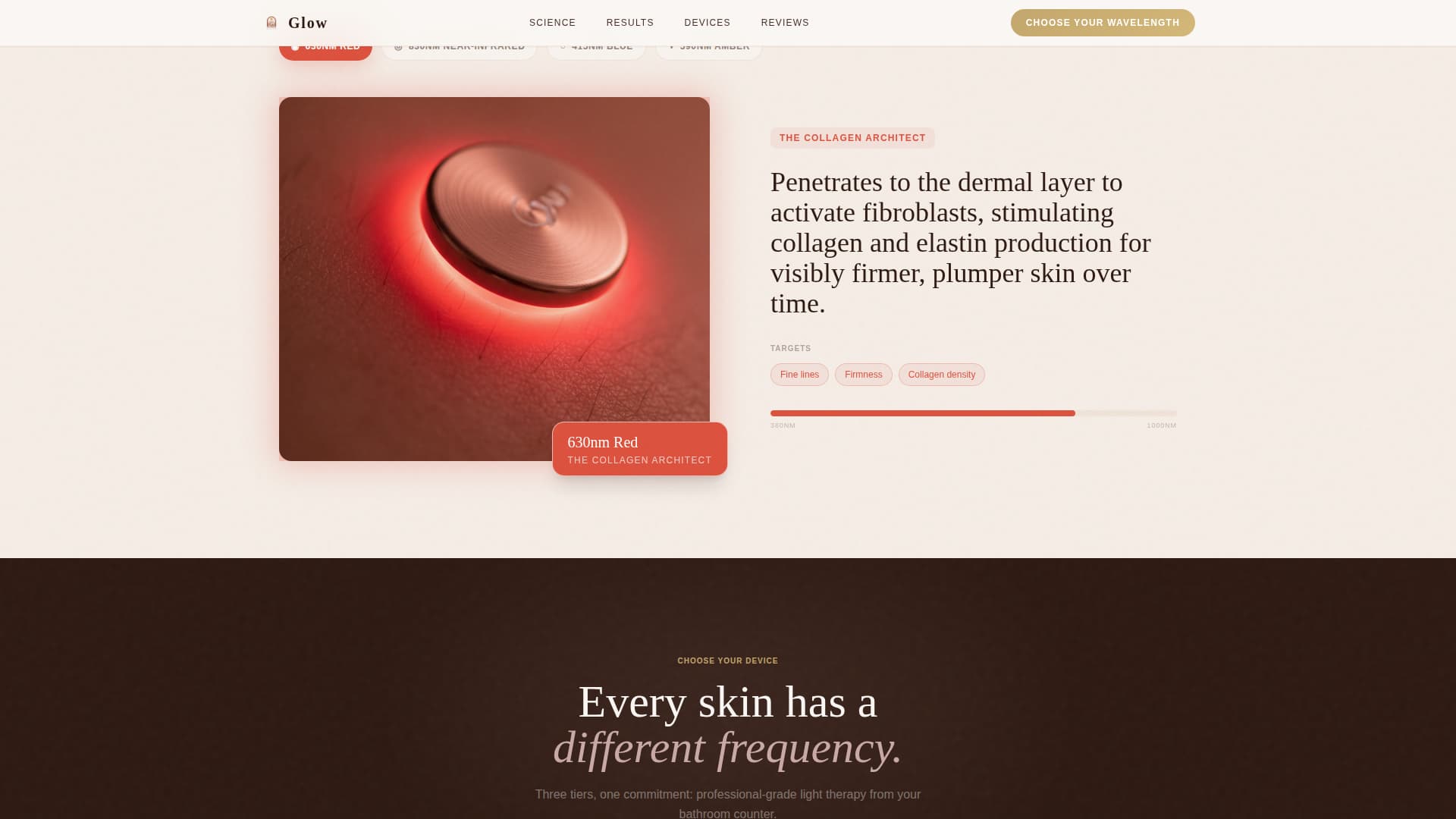 Many beauty device pages either feel too clinical or too lifestyle-soft. Neither approach converts a buyer who reads ingredient lists and compares wavelength specs before spending several hundred dollars.