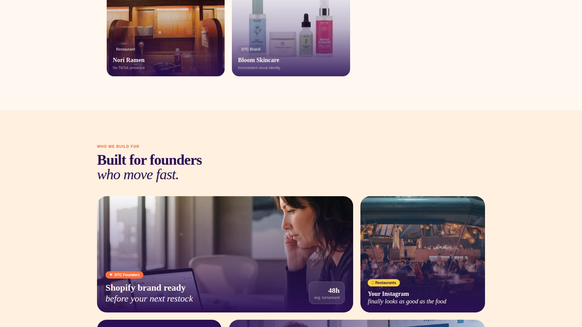 This template is built for under-25 agency founders who need a page that matches the energy of their work. It speaks directly to creative teams that move faster than traditional agencies and want their landing page to prove it.