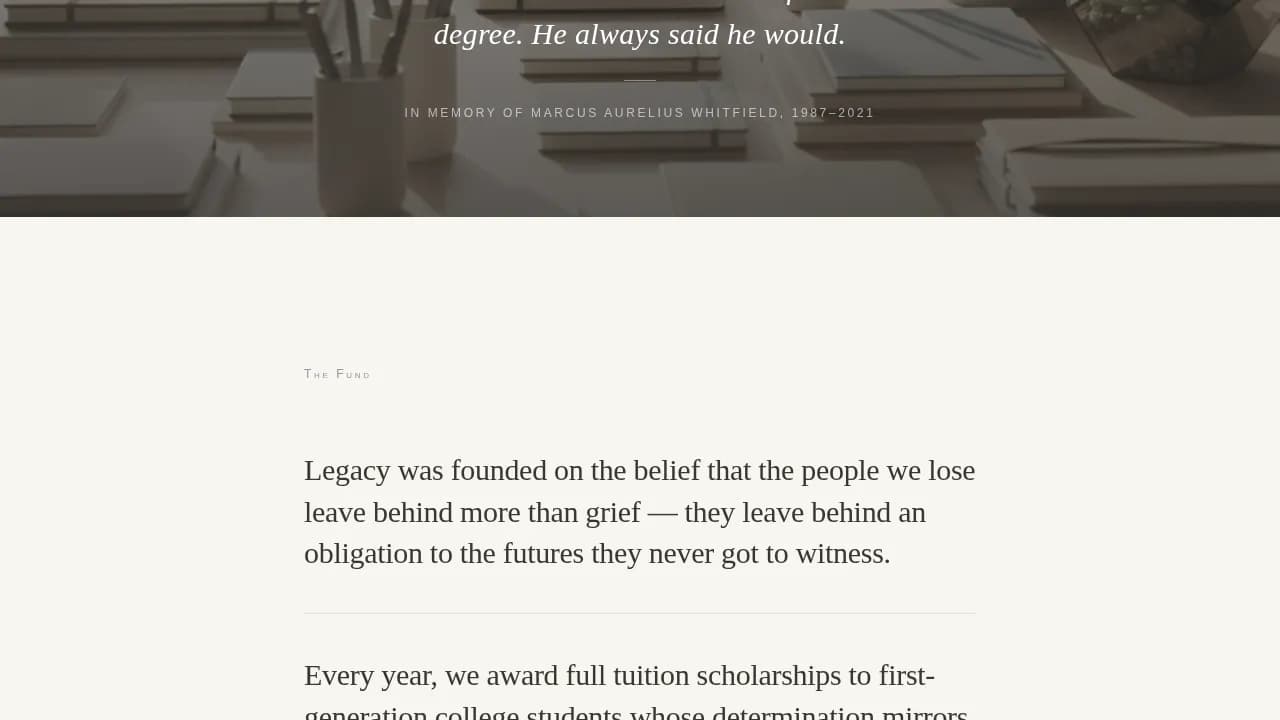 Legacy - Immersive Memorial Scholarship Fund Landing Page Template