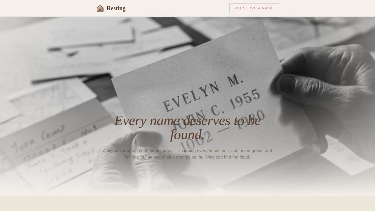 Resting - Preserve Every Name Cemetery Mapping Landing Page Template