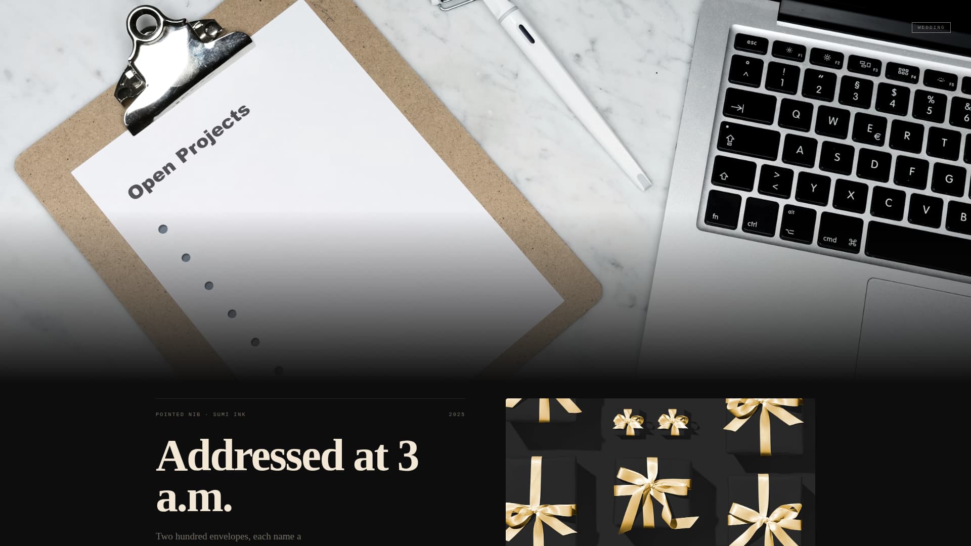 Most portfolio templates flatten craft into a grid of thumbnails. For a calligrapher, that format destroys the very thing clients are buying: the physical sensation of ink meeting paper. Stroke fixes this by giving each project its own full-page moment.