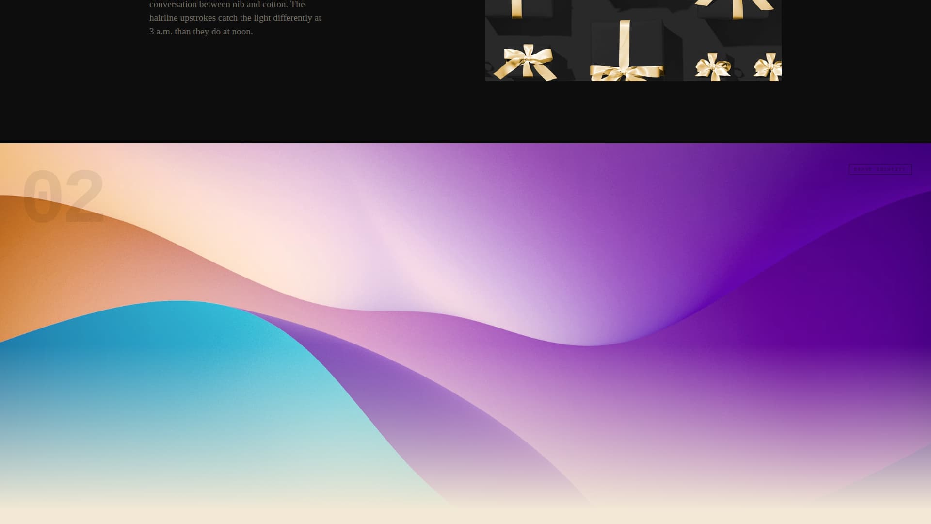 Sections alternate between deep lampblack and raw parchment with no gentle fades. Each transition feels like a page torn rather than turned. The scroll rhythm accelerates from early to late projects, building the impression of prolific and restless output.