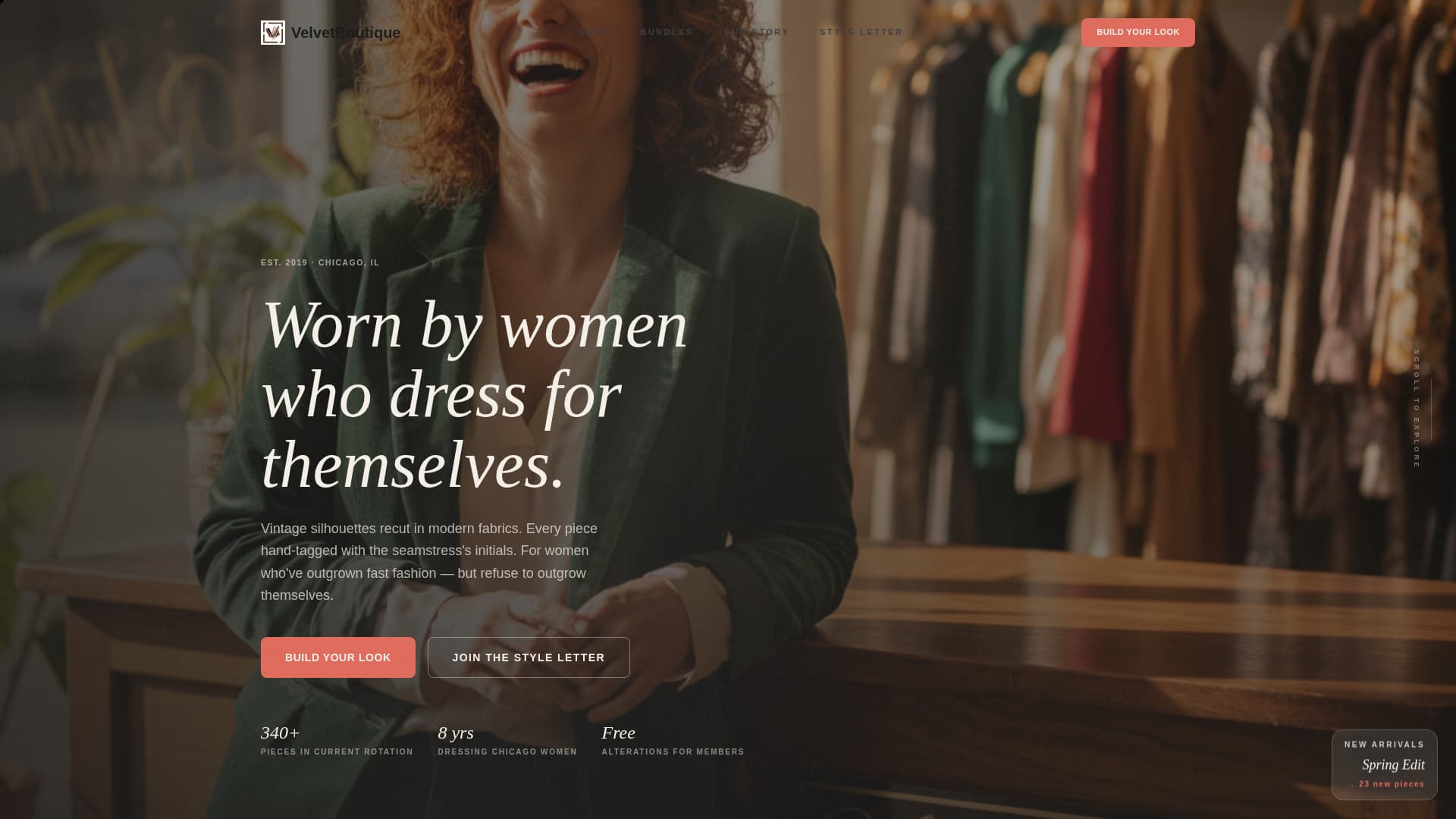 This template speaks directly to independent boutique owners who want their online presence to feel as considered as their shop floor. It is built for women who have curated a real point of view and want visitors to feel that immediately.