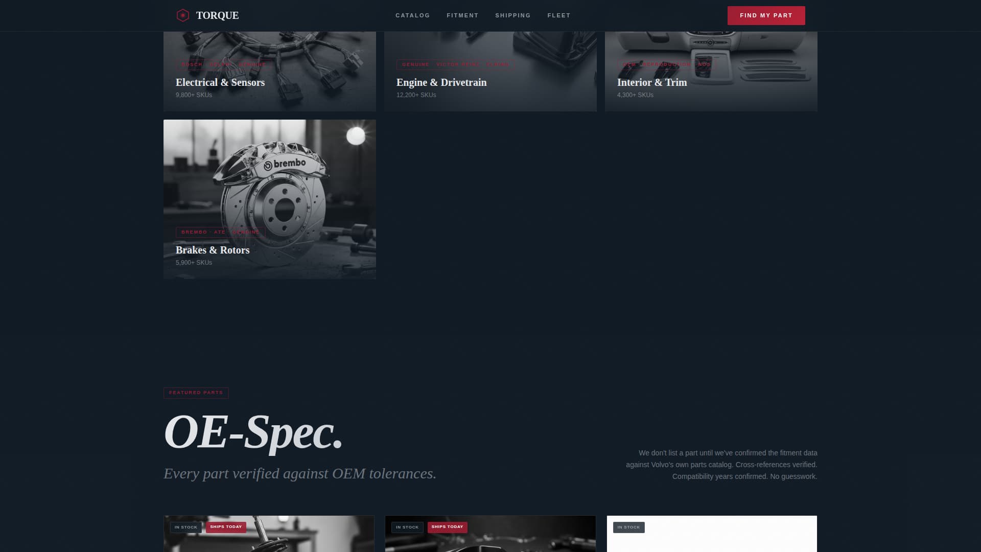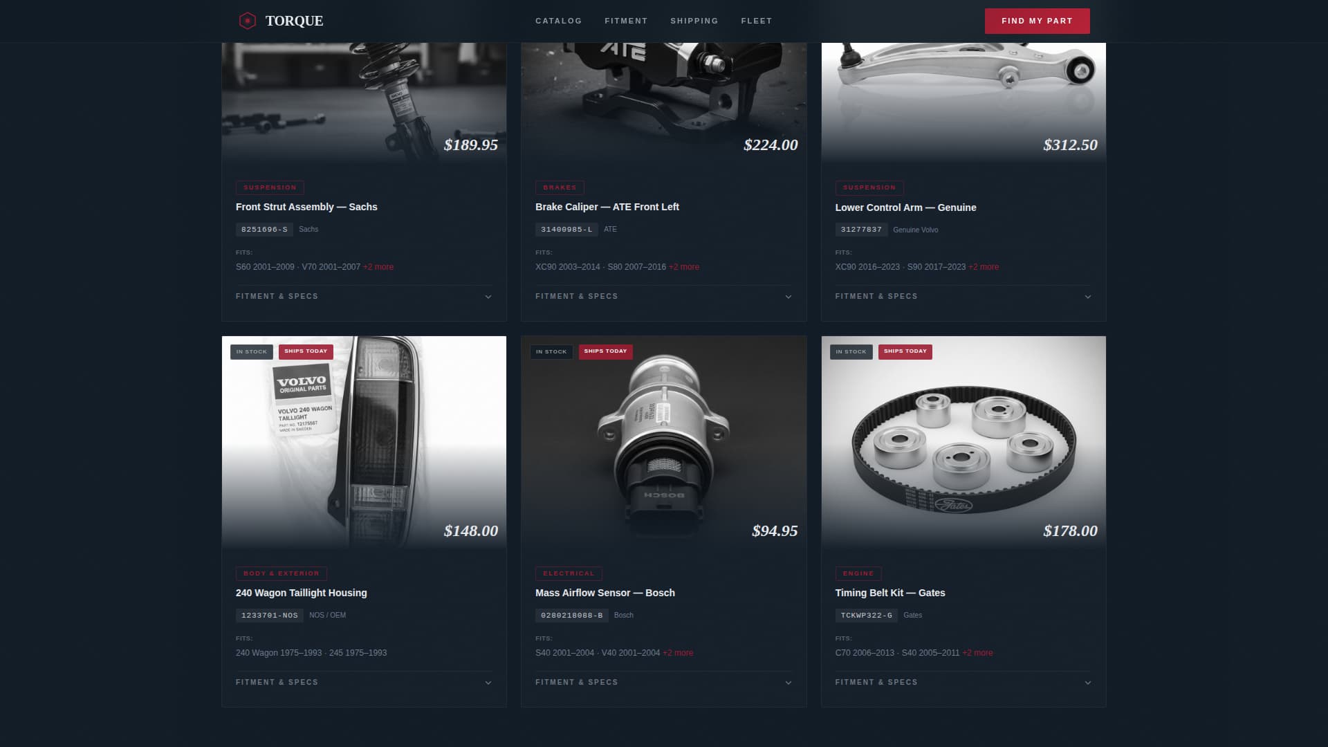 Finding the right Volvo part online is frustrating when a page gives no fitment context, no compatibility years, and no signal that the seller actually stocks what you need. Torque removes every one of those objections before the visitor reaches a single form field.